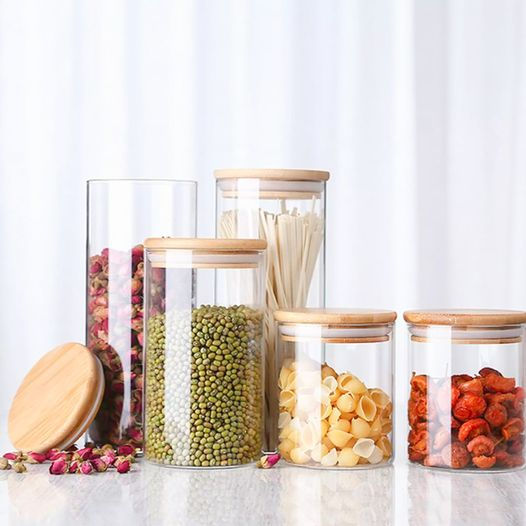 CAJA CON TARROS DE CRISTAL PREMIUM Y TAPA DE BAMBÚ