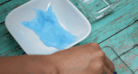 Agua, pegamento líquido transparente, detergente líquido para ropa, colorante y diamantina.