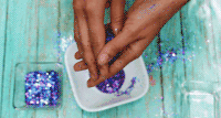 Toma la pasta y amásala súper bien para que se llene de diamantina. Tómate tu tiempo, el chiste es que te relajes y diviertas con tu nueva slime.