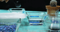 Ahora otra cucharada de colorante azul y sigue revolviendo. Vas a empezar a notar que se hace una pastita, eso significa que ya casi viene la parte divertida.